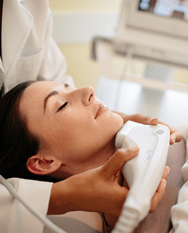 HIFU harnesses concentrated ultrasound energy to reach the foundational layers of the skin, including the Superficial Musculo-Aponeurotic System (SMAS)—the same structural plane addressed in surgical facelifts.